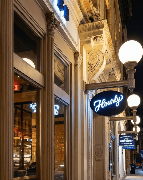 The building at 15 Dunster Street’s history is equally storied. The exact footprint in which The Hourly stands is rumored to be the location where the first Freeman’s Oath was printed in 1639 and is also the home of the original Second Cambridge Savings Bank building, as well as Harvard Square’s ice cream icon of 27 years, Herrell’s. The Hourly channels the square’s colorful past, blending historic charm with a contemporary experience.