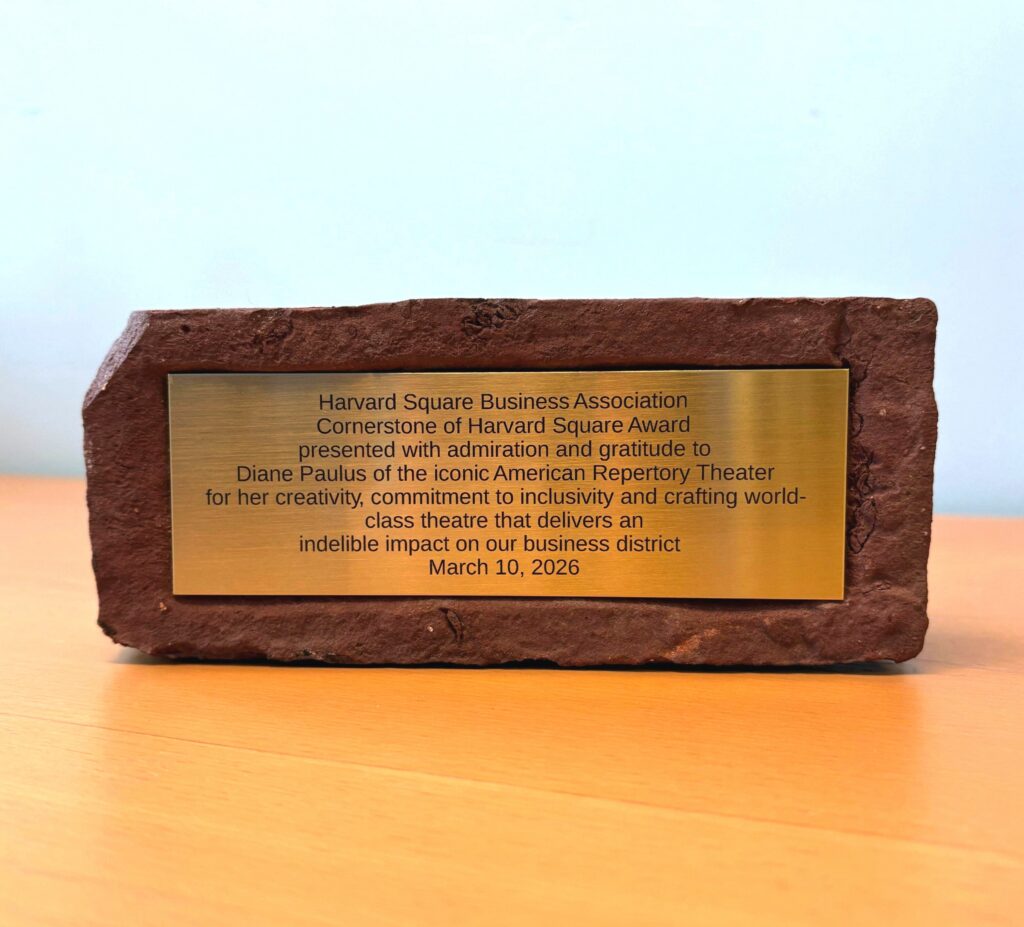 CAMBRIDGE, MA – American Repertory Theater (A.R.T.) at Harvard University announced today that it will incorporate an original Harvard Square brick into the construction of its new home, the David E. and Stacey L. Goel Center for Creativity & Performance. The inscribed brick was presented to the theater by the Harvard Square Business Association as its 2026 Cornerstone Award, recognizing A.R.T.’s more-than-four-decade impact on the business district.