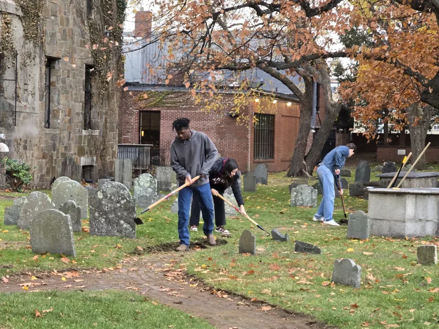 Their work was part of a larger collaboration among the Cambridge Historical Commission, Harvard, Cambridge Department of Public Works, First Parish, and the Christian Science Reading Room, who began coordinating efforts to revitalize the Old Burying Ground in the summer of 2025 after observing the extent of overgrowth in the cemetery. Through the coordinated efforts of those groups, all 1,200-plus grave markers were surveyed and inventoried, preserving historical records even where the inscriptions had eroded.