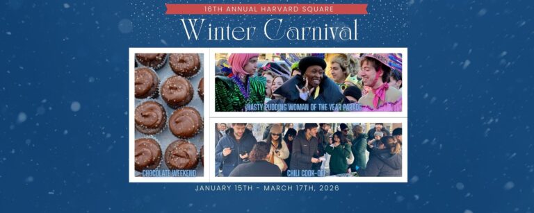 The Harvard Square Business Association welcomes you to attend Winter Carnival 2026! The temperatures may be dropping but we are gearing up for some of the most highly anticipated events of the year, including the 18th Annual Taste of Chocolate Festival and the 16th “Some Like it Hot” Chili Cook-off. In addition to these signature events, there are activities and events happening in our restaurants, stores and cultural institutions.
