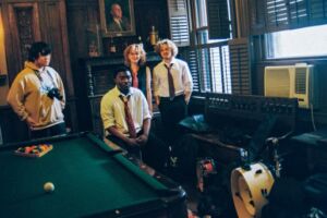 In a rare opportunity, students created original work not only at Behind VA Shadows but also within the historic St. Botolph Club—one of Boston’s most exclusive venues— thanks to Spiro’s appointment as a St. Botolph Fellow and exhibiting artist in the club’s Fanfare Biennial. The exhibition title, The Student Visitors, reflects the students’ brief but impactful presence in these iconic Boston spaces, and nods to Ragnar Kjartansson’s The Visitors, a performance-based video work central to the course’s inquiry into collectivity, gesture, and intimacy.