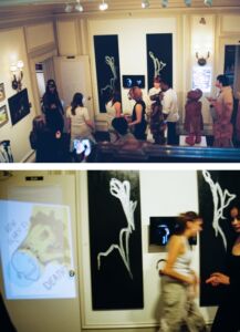 Working in groups, students developed installations and printed catalogues around four thematic frameworks, combining performance, video, and immersive media:
